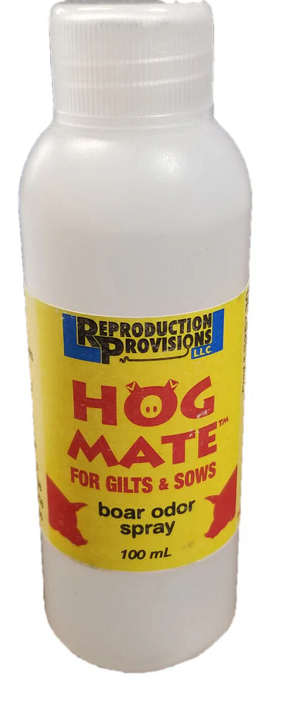 An essential to determine if a gilt or sow is at a correct stage of estrus for AI. The spray contains a solution of the same pheromone compound that occurs naturally in the boar and is responsible for the 'boar odor'.